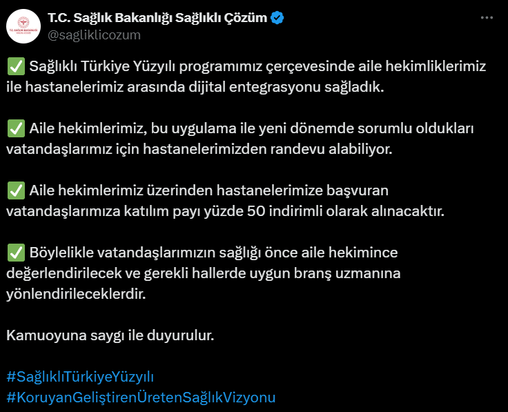 Yeni uygulama ile ilgili @sagliklicozum X hesabından yapılan açıklama şöyle :
