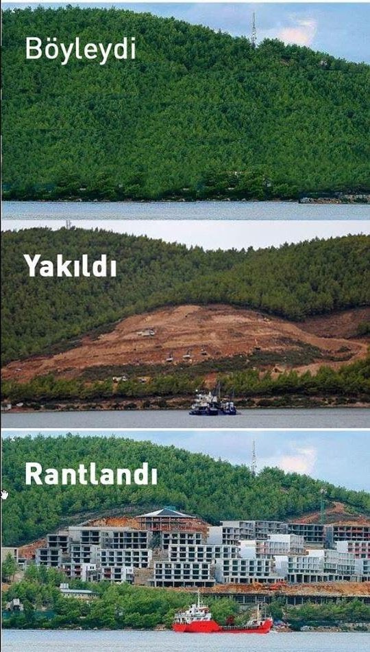 Bakan Ersoy’un bu beyanını eleştiren Halıcı, 15 Temmuz 2007’de Muğla’nın Milas ilçesine bağlı Meşelik Mahallesi’ndeki yangını hatırlattı. Yangın sonucunda yok olan orman alanı, tarım arazisi ve zeytinliklerin bulunduğu araziye “lüks oteller yapılmadı mı?” sorusunu yöneltti.