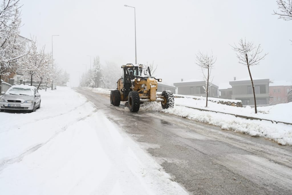 Ekipler, kar yağışının daha yoğun olduğu Binbirevler, Batıkent, Işıkkent, Dere, Yenice gibi üst mahallelerdeki yollarda da aralıksız kar kürüme ve tuzlama çalışmalarını sürdürüyor.