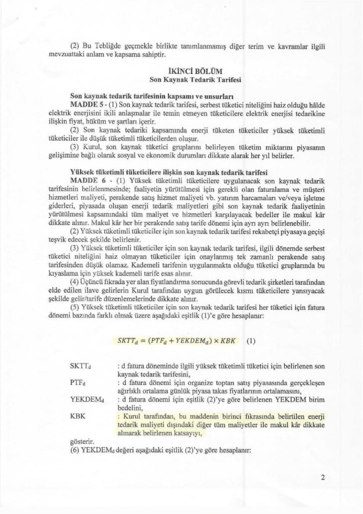 Yıllık 750 kWh ve üzerinde elektrik tüketimi olan konut abonelerinin serbest tüketici tanımına sokulduğu karar Aylık 62,5 kWh ve üzerinde elektrik tüketimine karşılık gelen bu elektrik miktarı sabit fiyatlı tarifede aylık 130 TL ve üzerindeki faturaları kapsamaktadır.