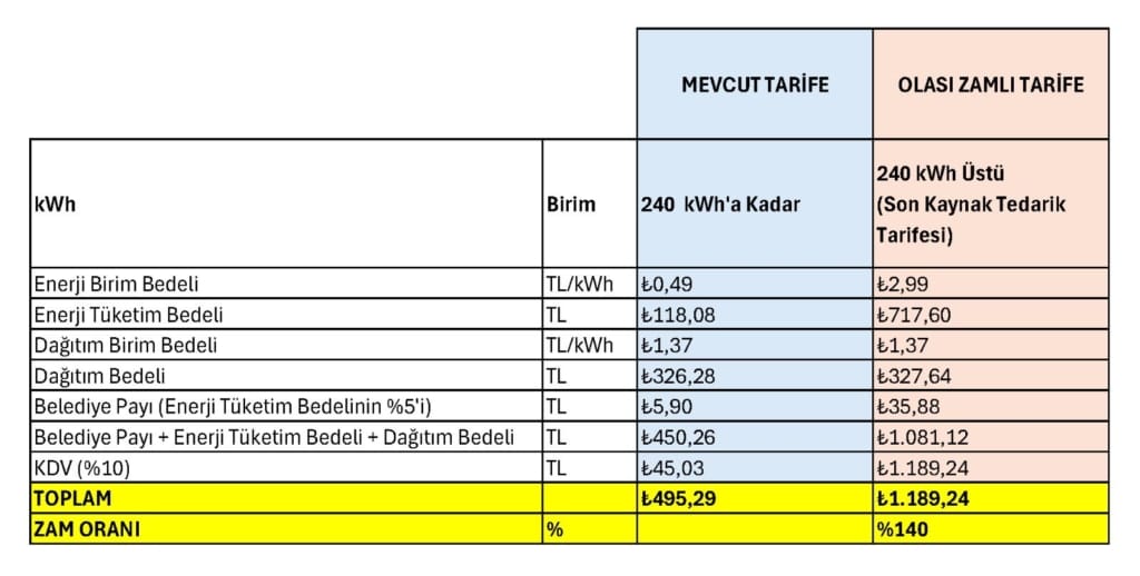 Bu da 495 TL’lik faturanın 1.190 TL’ye çıkması, yani %140 zam gelmesi demek!